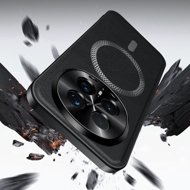 Custodia premium compatibile con MagSafe per Honor Magic 8 Pro 5G. Struttura in PU, TPU e PC per una protezione ottimale, design airbag che assorbe gli urti, cornice in metallo per l'obiettivo rialzato e tagli precisi. Pulsanti indipendenti e bordi antiscivolo.