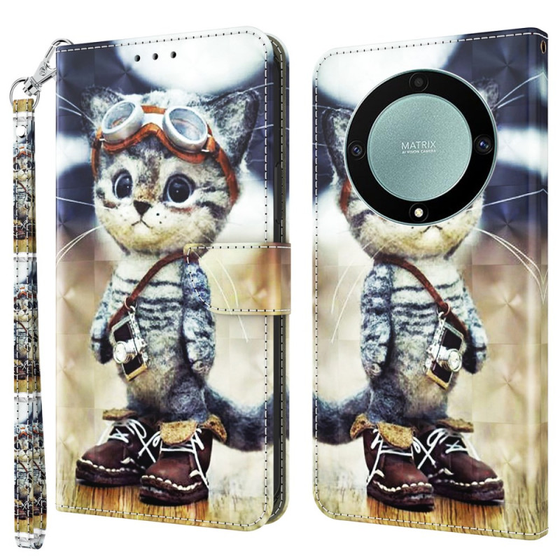 Questa cover per telefono Aviator Cat per Honor Magic 5 Lite 5G / X9a presenta un esclusivo motivo 3D che aggiunge un tocco di stile al tuo