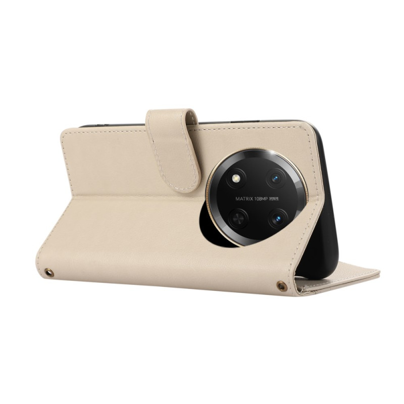 Custodia multifunzione in pelle PU con cerniera e molteplici scomparti per carte di credito. Combina protezione ottimale e praticità quotidiana, con cinturino staccabile e supporto integrato per un'esperienza a mani libere.