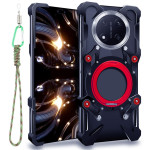 Proteggete il tuo smartphone con questa robusta cover bumper dotata di anello magnetico rotante a 360° e cinturino da polso. L'elegante design industriale offre una protezione extra contro urti e cadute, con angoli rinforzati.