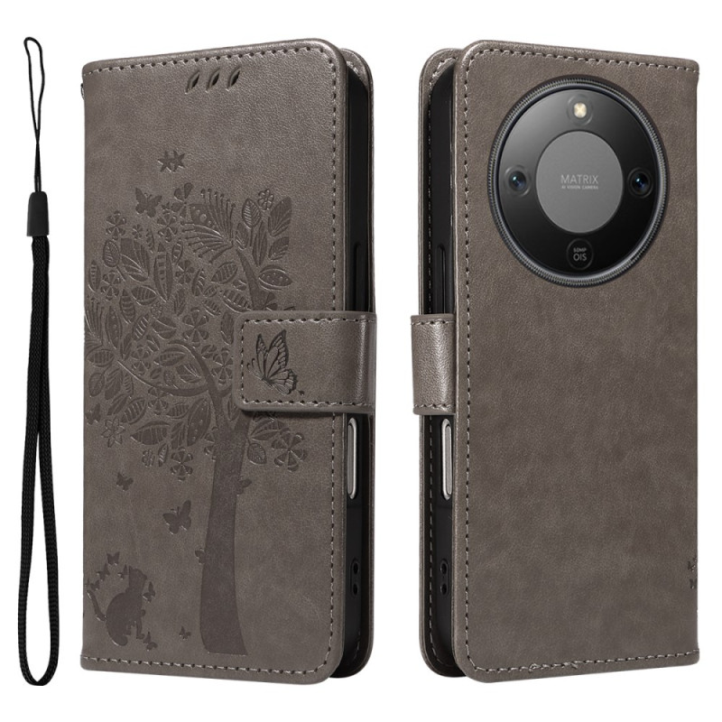 Proteggete il tuo Honor Magic 8 Lite con stile grazie a questa cover multifunzione. Caratterizzata da un raffinato motivo a gatto e albero, offre scomparti per le carte, un supporto integrato e un pratico laccetto per un uso quotidiano ottimale.