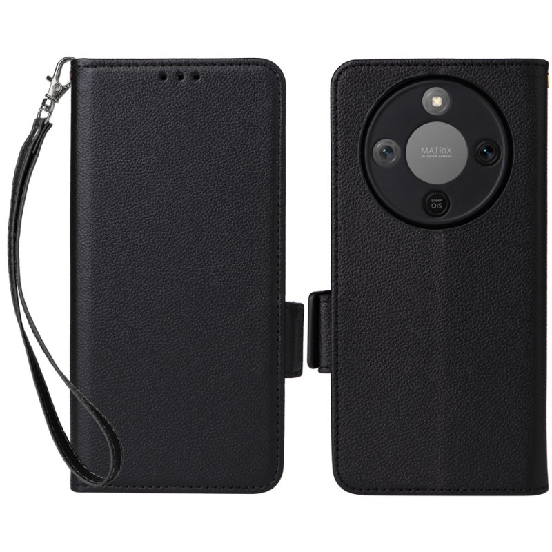 Elegante cover a portafoglio in pelle PU con texture litchi per Honor Magic 8 Lite. Dispone di più scomparti per carte, funzione di supporto mani libere e chiusura magnetica sicura. Viene fornita con un pratico laccetto per la mano.