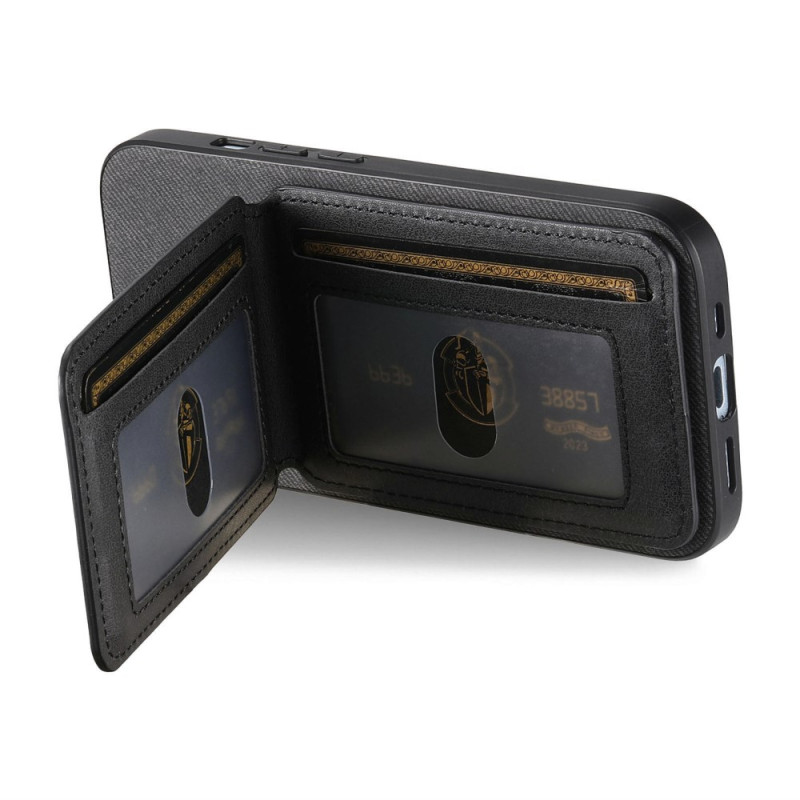 Proteggete il tuo smartphone con stile grazie a questa cover multifunzione dotata di un portacarte sicuro con blocco RFID, un supporto regolabile a due vie e una robusta chiusura magnetica. Design sottile e raffinato per l'uso quotidiano.