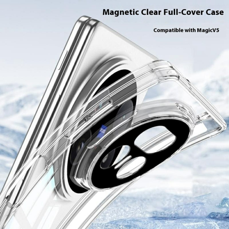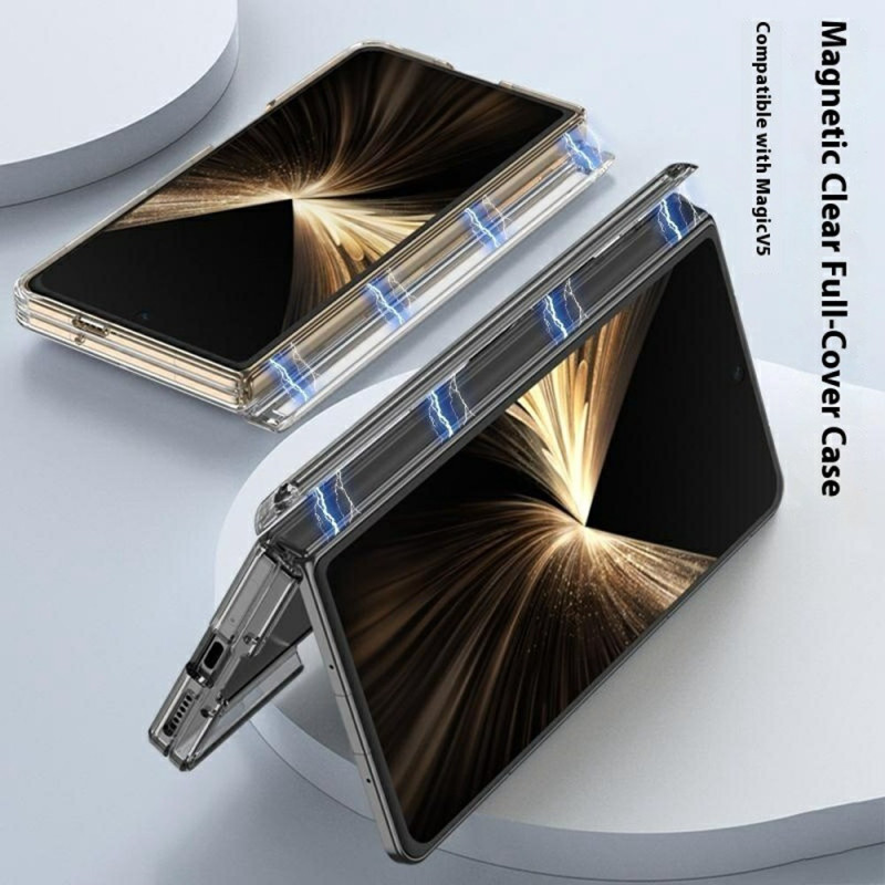 Scoprite il nostro cover protettivo completo per Honor Magic V5 5G. Realizzato in TPU resistente, offre una protezione completa contro cadute e graffi, preservando l'estetica originale del dispositivo. Il design della cerniera magnetica assicura una perfetta aderenza e protegge il meccanismo di piegatura.