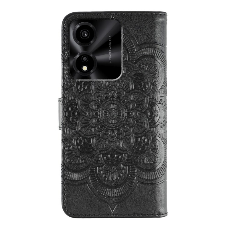 Custodia a portafoglio in pelle PU con motivo mandala stampato per Honor X5c Plus. Progettata all'insegna dell'eleganza e della funzionalità, offre una protezione robusta e uno stile unico. Dotata di slot per carte, scomparto per banconote e funzione stand, è la soluzione perfetta per combinare praticità ed estetica.