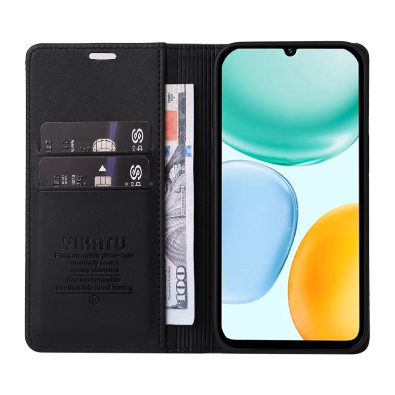 Scoprite la nostra elegante cover portafoglio in pelle PU per Honor X5c Plus. Dotata di una robusta chiusura magnetica, due slot per carte e una tasca per appunti, questa cover combina funzionalità e stile. La funzione di supporto integrata consente una visione mani libere , ideale per guardare video o effettuare chiamate.