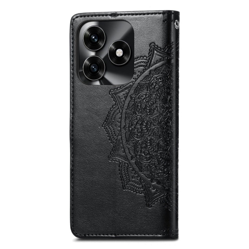 Elegante cover a portafoglio in pelle PU con motivo mandala in rilievo per Honor X5c Plus 4G. Design pratico con 3 scomparti per carte, tasca per biglietti, supporto vivavoce integrato e chiusura magnetica sicura. Protezione ottimale grazie al bordo rialzato.