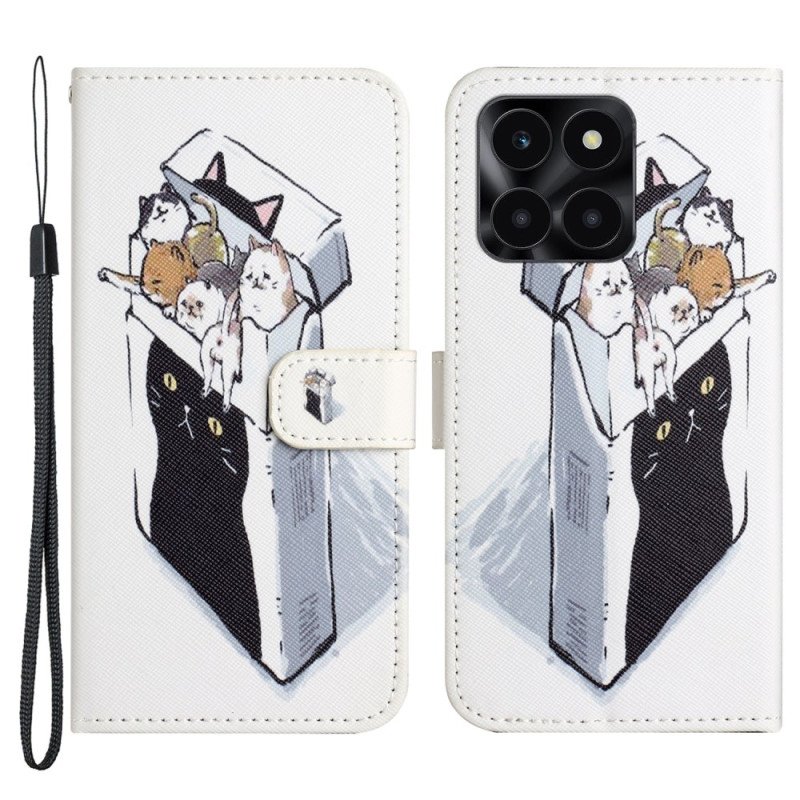 Elegante cover a portafoglio con stampa 3D di adorabili gatti. Protezione completa in pelle PU premium e TPU flessibile. Include un supporto regolabile, 2 scomparti per carte, una tasca per le note e un pratico cinturino da polso. Chiusura magnetica sicura.