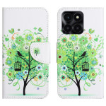 a portafoglio con il motivo di un albero verde. Dotata di 2 scomparti per carte, un supporto regolabile e una sicura chiusura magnetica, questa cover