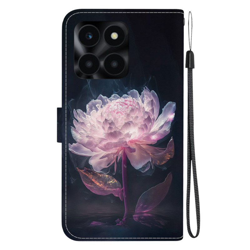 Découvrez cet élégant étui portefeuille pour Honor X6a 4G orné d'un superbe motif pivoine violette. Alliant style et fonctionnalité, il offre une protection complète avec support intégré, rangements pratiques et dragonne sécurisée.