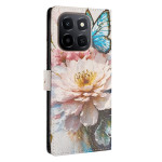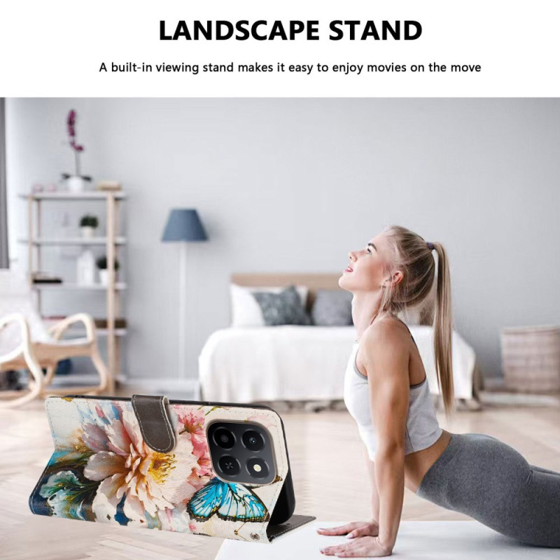 Proteggete il tuo Honor X6c 4G / X5b / X5b Plus con stile grazie a questa cover a portafoglio con motivo di farfalle e fiori. Con scomparti per le carte, un supporto regolabile e un cinturino da polso staccabile, unisce stile e praticità per l'uso quotidiano.