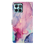 Elegante cover a portafoglio in similpelle con motivo a marmo verde e rosa per Honor X6c 4G. Design all-in-one con 2 scomparti per carte, 1 scomparto per foto e tasca laterale. Supporto integrato per la visualizzazione mani libere e cinturino staccabile.