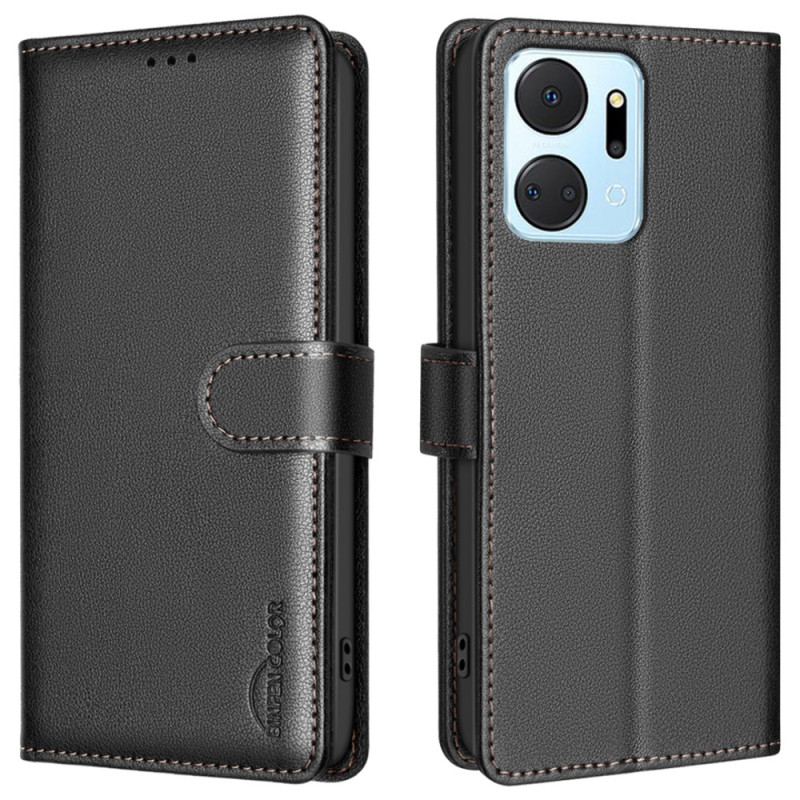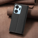 Custodia in pelle PU premium con texture litchi per Honor X7a 4G. Con 3 slot per carte, 1 tasca d'argento e tecnologia anti-RFID. Chiusura magnetica sicura e funzione di supporto mani libere per un comfort quotidiano ottimale.