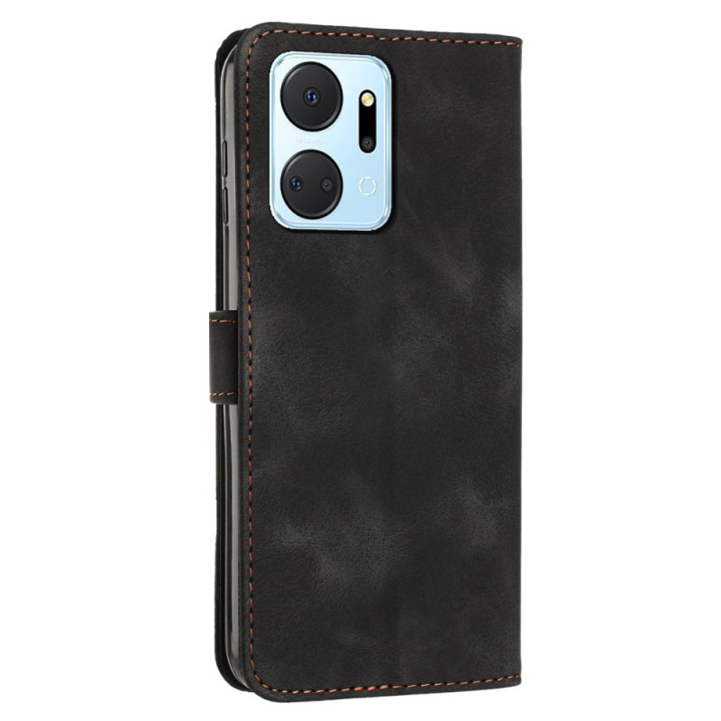 Elegante cover a portafoglio in pelle PU e TPU per Honor X7a 4G. Design moderno con motivo triangolare, funzione stand integrata, 3 slot per carte e chiusura magnetica sicura. Protezione completa contro gli urti quotidiani.