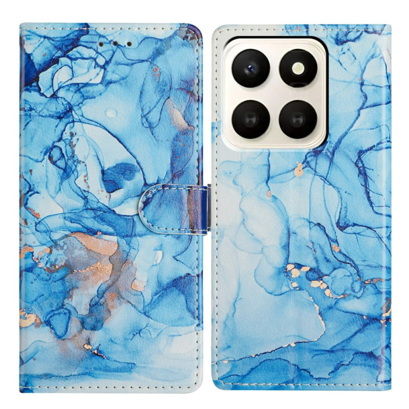 Elegante cover a portafoglio con patta e magnifico motivo marmo blu. Presenta 2 scomparti per carte, 1 scomparto per foto e una spaziosa tasca laterale. Supporto pieghevole integrato per una visione mani libere e tracolla staccabile per un facile trasporto.