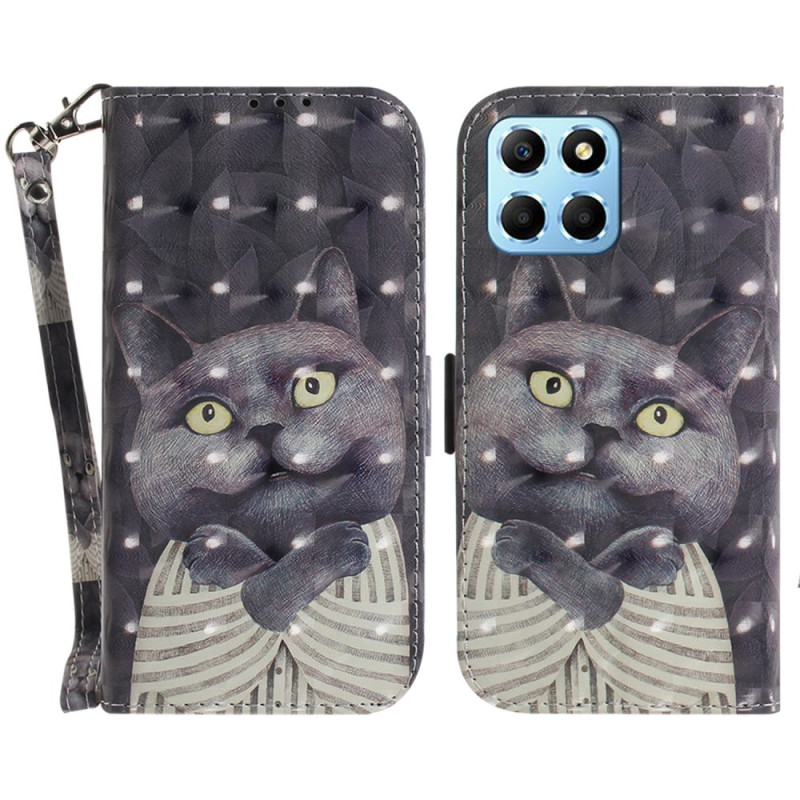 Elegante cover a portafoglio per Honor X8 5G con un affascinante design a forma di gatto. Presenta slot per carte di credito integrati, supporto pieghevole e chiusura magnetica sicura. Viene fornita con un pratico laccetto per facilitare il trasporto.