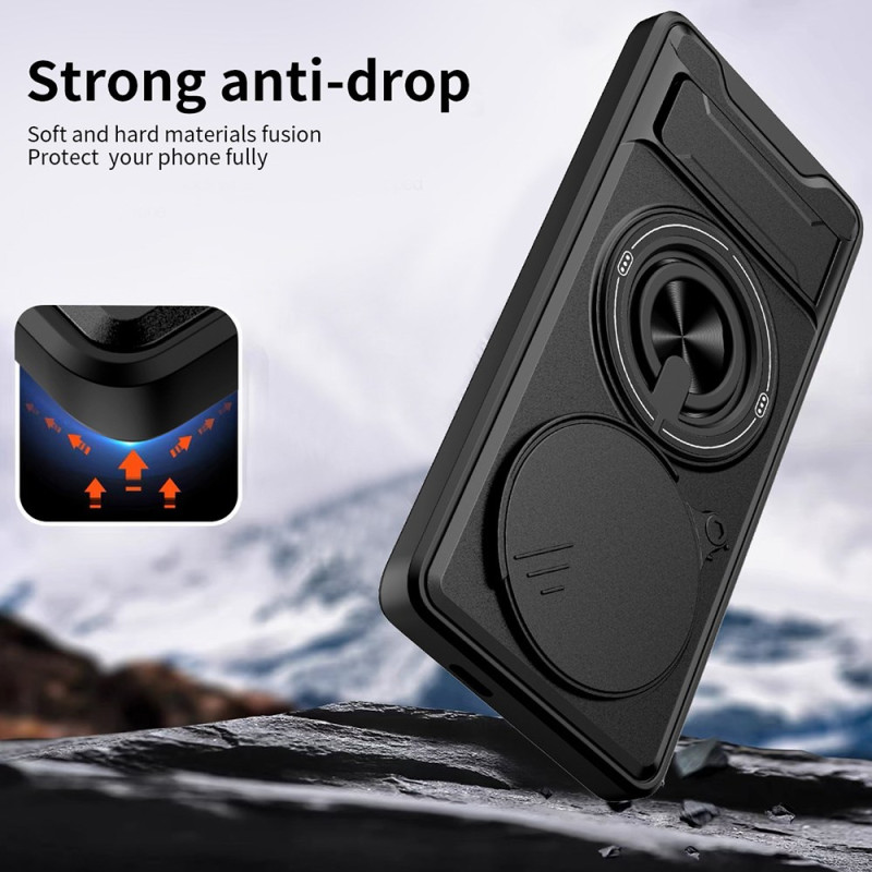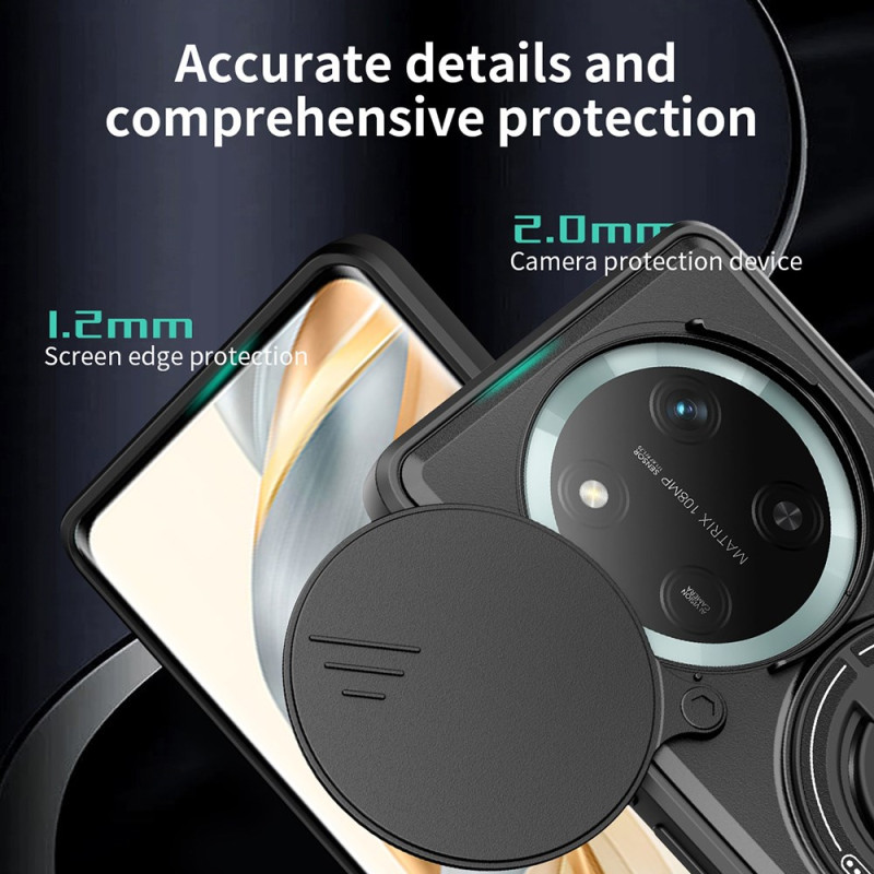 Proteggete il tuo Honor Magic 7 Lite / X9c con questa robusta cover magnetica. Doppia protezione in TPU e PC, anello rotante a 360°, supporto pieghevole integrato e protezione scorrevole della fotocamera per una sicurezza ottimale.
