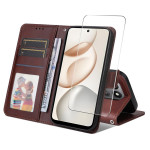 Custodia a portafoglio in pelle PU di alta qualità per Honor 400 Smart. Protezione completa con supporto integrato, chiusura magnetica e vetro temperato. Perfetta per custodire carte e denaro, offre un utilizzo mani libere e una protezione ottimale contro graffi e urti.