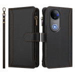 Custodia multifunzione per Vivo V50 5G che offre una protezione completa. Con 9 scomparti per carte, tasca per monete con cerniera e supporto per mani libere. Chiusura magnetica sicura e pratico laccetto incluso.