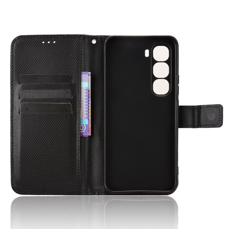 Proteggete il tuo Infinix Hot 60 Pro 4G con stile grazie a questa elegante cover a portafoglio. Caratterizzata da una sofisticata texture a diamante, scomparti per le carte, un pratico cinturino da polso e un supporto pieghevole integrato per un'esperienza a mani libere.