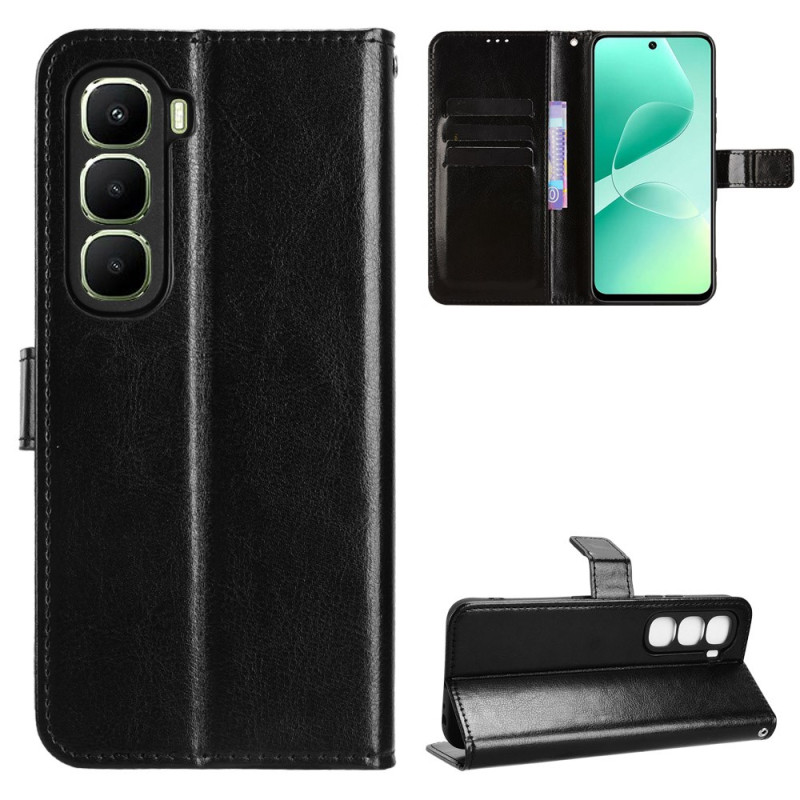Scoprite questa elegante cover a portafoglio in pelle PU effetto Crazy Horse per il tuo Infinix Hot 60 5G / Hot 60i 4G. Con 3 scomparti per carte di credito, una sicura chiusura magnetica e un pratico laccetto per la mano, unisce stile e funzionalità.