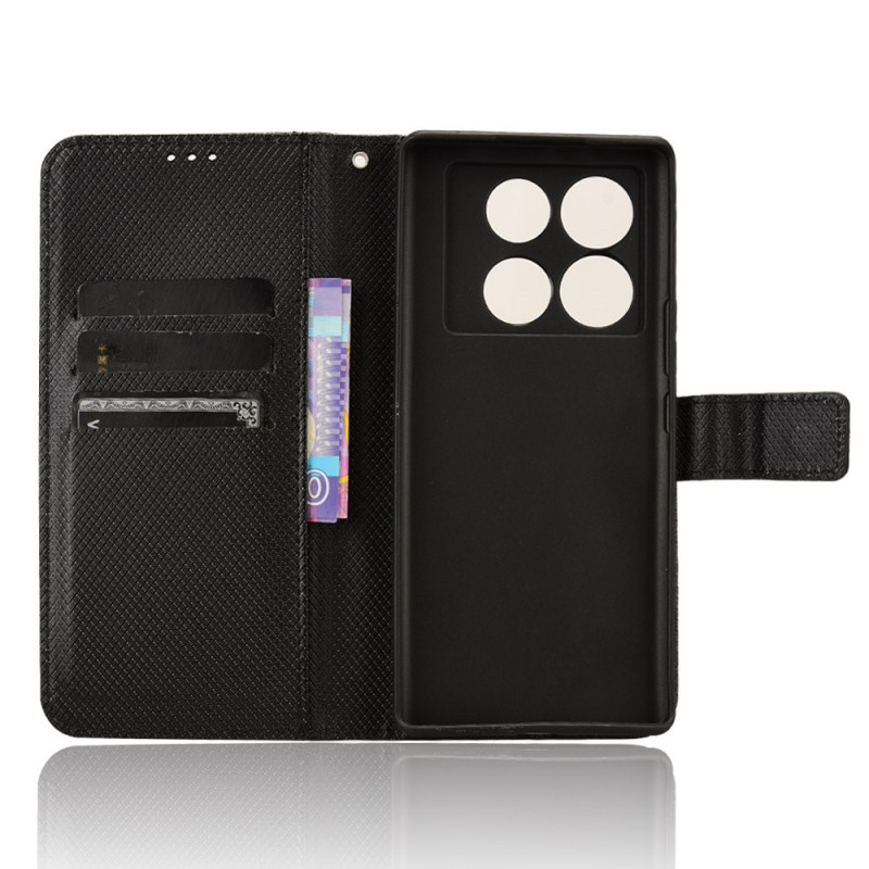 Elegante cover a portafoglio con texture a diamante per il tuo Infinix Note 40 5G. Con più scomparti per carte, supporto integrato e chiusura magnetica sicura. Protezione completa e stile raffinato per l'uso quotidiano.
