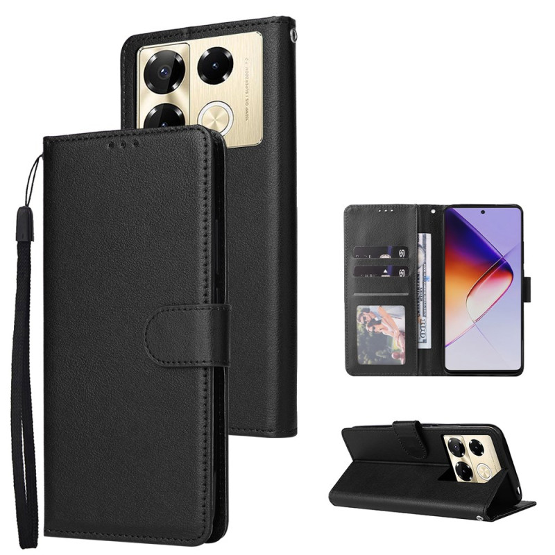 Elegante cover a portafoglio per Infinix Note 40 Pro 5G / 4G / 40 Pro Plus 5G con più slot per carte, supporto pieghevole integrato e chiusura magnetica sicura. Design pratico con cinghia a mano per un facile trasporto quotidiano.