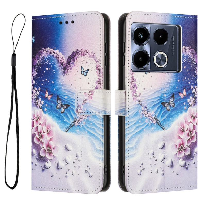 Proteggete il tuo Infinix Note 40 Pro 5G / 4G / 40 Pro Plus 5G con stile grazie a questa elegante cover a portafoglio con motivo a farfalla a forma di cuore. Dotata di slot per carte di credito, supporto pieghevole e pratica chiusura magnetica, unisce funzionalità ed eleganza.