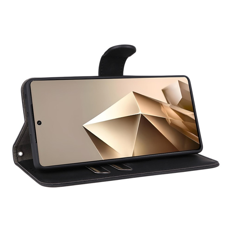Elegante cover a portafoglio in pelle PU con sensazione di pelle per il tuo Infinix Note 50 Pro 4G. Dotata di 2 scomparti per carte, 1 tasca per biglietti e un supporto regolabile. Protezione completa contro urti e graffi con pratico laccetto.