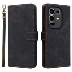 Custodia multifunzione per Infinix Note 50 Pro Plus 5G con blocco RFID, supporto integrato e cinturino. Dispone di 3 scomparti per carte e 1 scomparto per contanti. Chiusura magnetica sicura per una protezione ottimale ogni giorno.