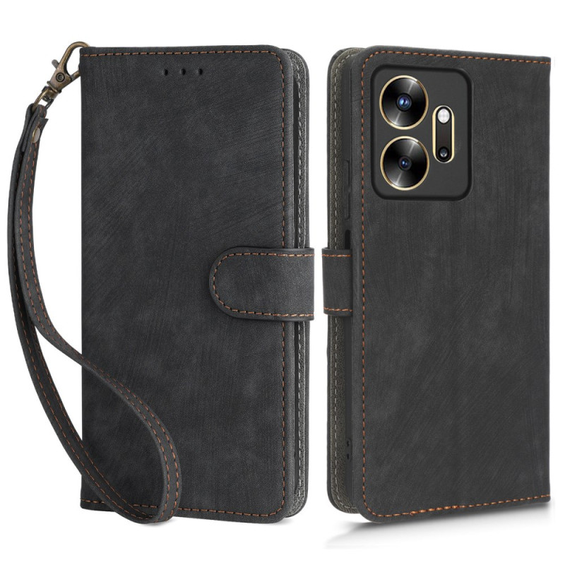 Custodia multifunzione per Infinix Zero 20 4G X6821 con protezione RFID integrata. Dispone di 3 scomparti per carte, uno scomparto per le note e un supporto per le mani libere. Chiusura magnetica sicura e laccetto incluso.