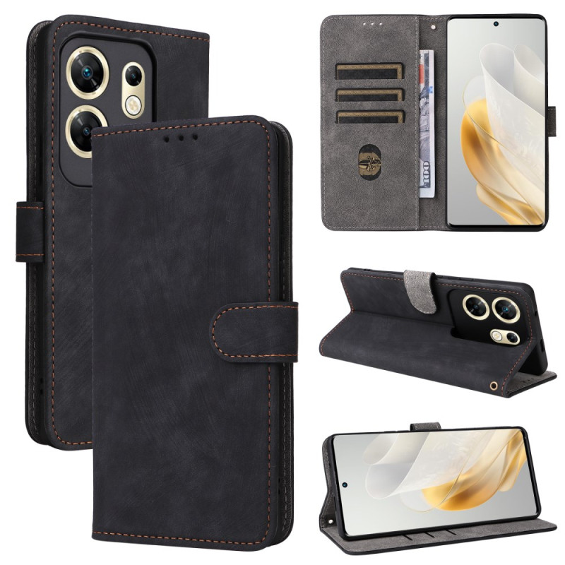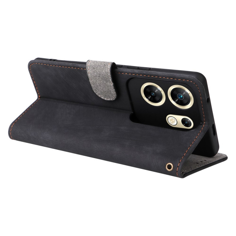 Custodia multifunzione in pelle PU per Infinix Zero 30 4G X6731B con protezione RFID integrata. Pratico design a portafoglio con 3 slot per carte, portamonete e cinturino rimovibile. Supporto ideale per guardare i video a mani libere.