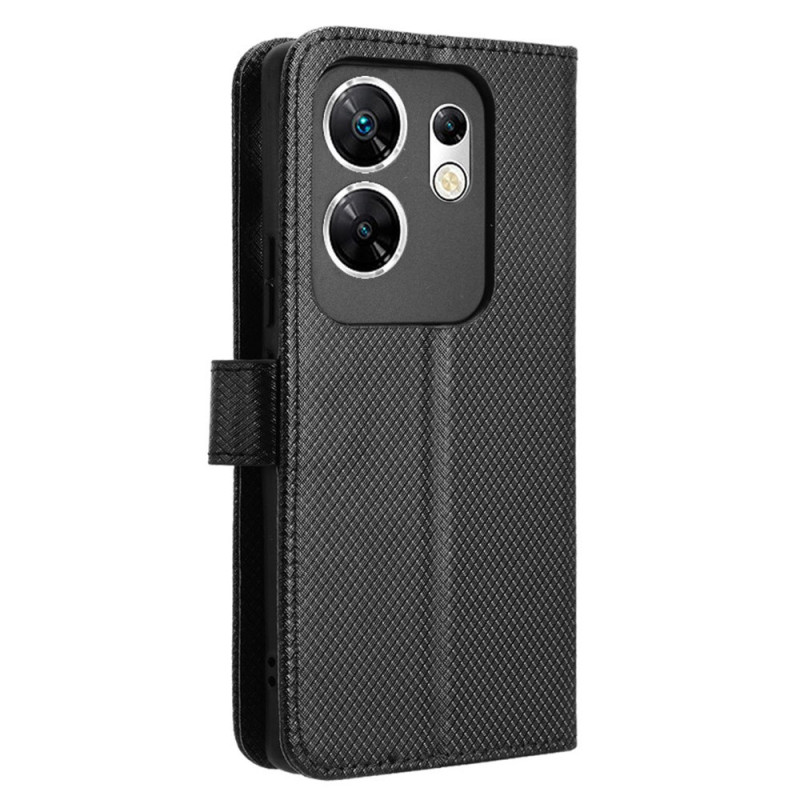 Elegante cover a portafoglio che unisce stile e protezione per il tuo Infinix Zero 30 4G X6731B. Sofisticato design a rombi, slot per carte e tasca per contanti integrati. Supporto pieghevole per una visione a mani libere.