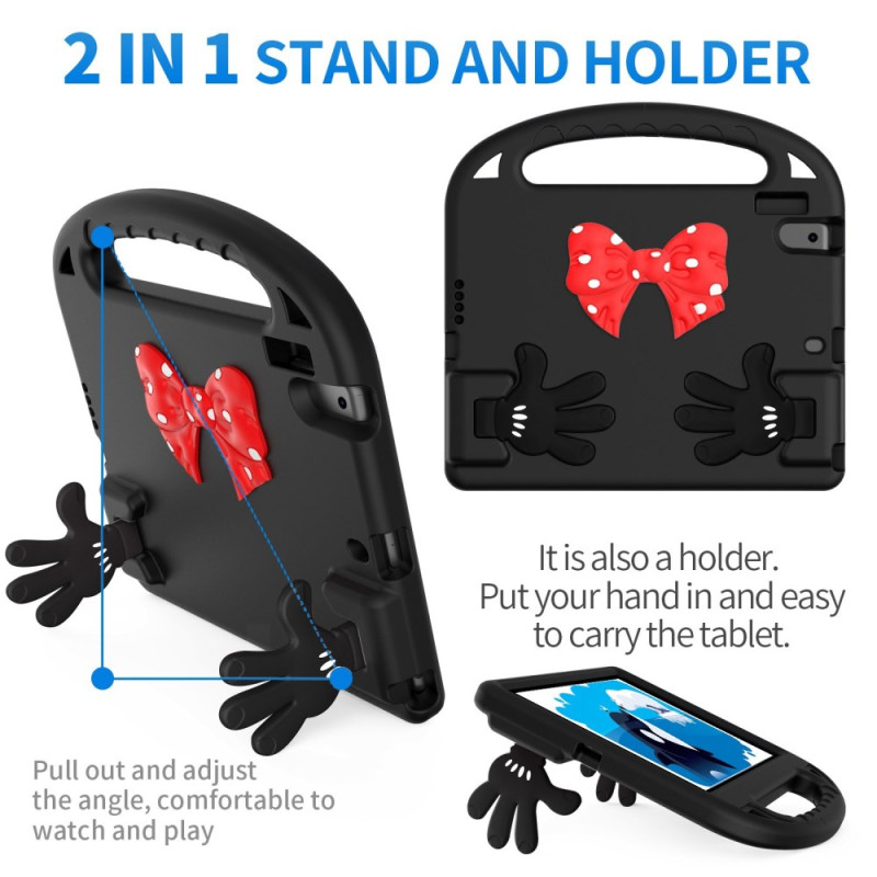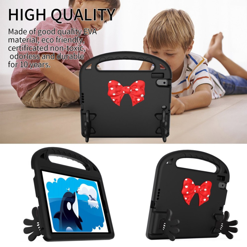 Proteggete il tuo iPad( 9,7 pollici) / iPad Pro 9,7 pollici / iPad Air / iPad Air 2 con questa innovativa cover in EVA. Il suo design ergonomico incorpora una pratica maniglia per facilitare il trasporto e un supporto pieghevole a forma di palmo per una visione ottimale a mani libere.