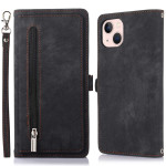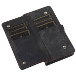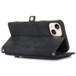 Custodia multifunzione in pelle PU per iPhone 13 mini. Dispone di 9 scomparti per carte, tasca sicura con cerniera e supporto integrato. È dotata di una tracolla staccabile per un pratico trasporto quotidiano.
