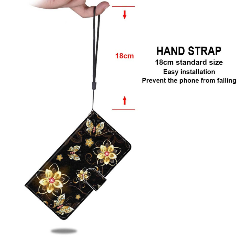 Transformez votre iPhone 13 Mini en accessoire de mode avec cet étui portefeuille élégant orné de fleurs dorées et papillons. Doté d'un support pliable pratique, de multiples rangements pour cartes et d'une dragonne confortable, il allie style et fonctionnalité au quotidien.