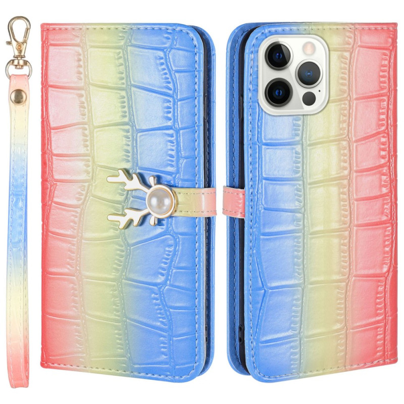 Proteggete il tuo iPhone 13 Pro Max con stile grazie a questa cover in pelle premium. Caratterizzata da una sofisticata texture coccodrillo sfumata, combina stile e funzionalità con slot per carte di credito, un supporto regolabile e una pratica cinghia per la mano.
