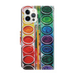 Proteggete il tuo iPhone 13 Pro Max con stile grazie a questa cover a portafoglio dal design artistico a palette. Dotata di pratici scomparti per carte di credito, di una tracolla rimovibile e di un supporto integrato, unisce funzionalità e stile per l'uso quotidiano.
