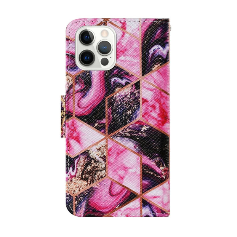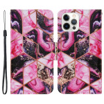 Proteggete il tuo iPhone 13 Pro Max con stile grazie a questa elegante cover a portafoglio con motivo geometrico rosa. Dotata di slot per carte di credito, di un pratico laccetto da polso e di un supporto integrato, questa cover combina praticità e design di tendenza per la tua vita quotidiana.