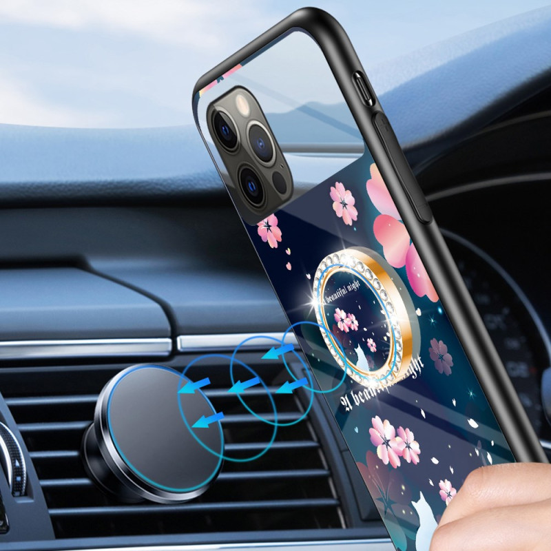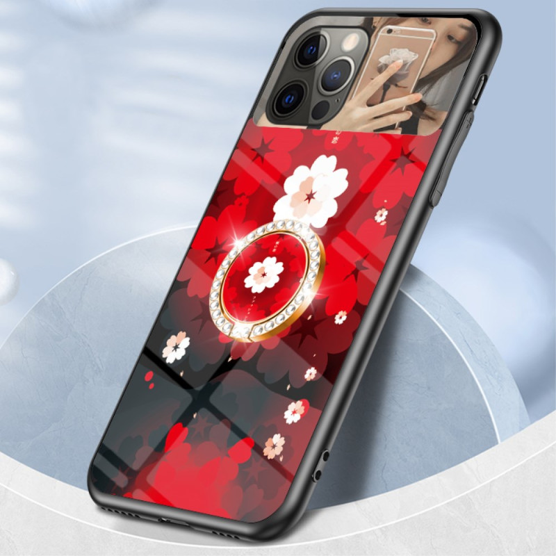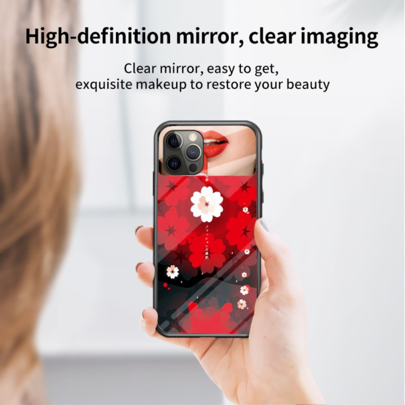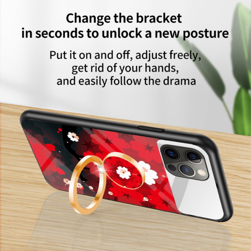 Proteggete il tuo iPhone 13 Pro Max con stile grazie a questa cover multifunzione. Il suo design innovativo combina un pratico specchio, un anello di supporto pieghevole e un delicato motivo floreale sakura per personalizzare il tuo telefono.
