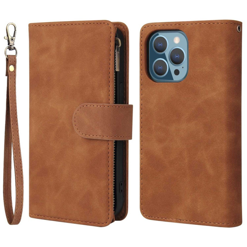 Custodia portafoglio multifunzione per iPhone 13 Pro Max, che unisce protezione e praticità. Dispone di più scomparti per carte, uno scomparto per contanti e una tasca aggiuntiva con cerniera. Il cover in morbido TPU e pelle PU offre una protezione ottimale contro urti e graffi.
