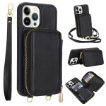 Elegante e sicura cover a portafoglio 2 in 1 per iPhone 13 Pro. Protezione RFID integrata, chiusura a zip per riporre carte e contanti, funzione di supporto video e tracolla staccabile per un utilizzo quotidiano a mani libere.