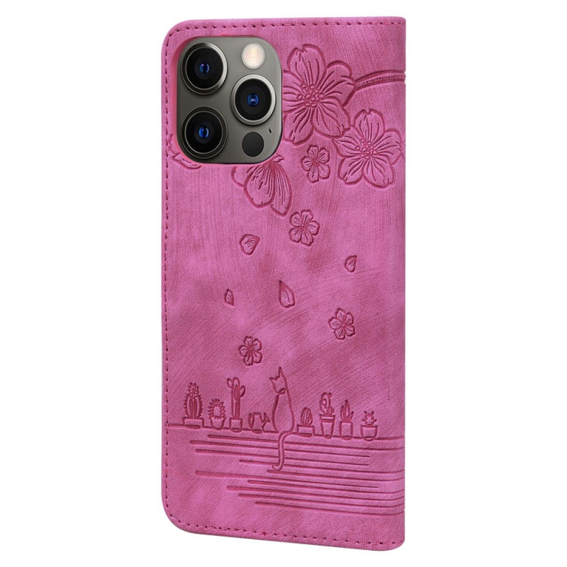 Proteggete il tuo iPhone 13 Pro con stile grazie a questa cover a portafoglio in pelle PU premium. Il suo design raffinato, caratterizzato da un gatto e da fiori di ciliegio, combina la protezione dagli urti con un pratico portacarte e una funzione di supporto. Chiusura magnetica e laccetto incluso per un facile trasporto quotidiano.