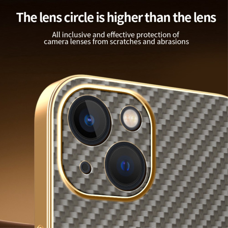 Scoprite la nostra elegante e resistente cover protettiva per iPhone 13. Realizzata in TPU flessibile con finitura galvanica e texture in fibra di carbonio, offre un eccellente assorbimento degli urti e un'estetica raffinata. La cover resiste alle impronte digitali, protegge la fotocamera e lo schermo e garantisce una presa sicura.