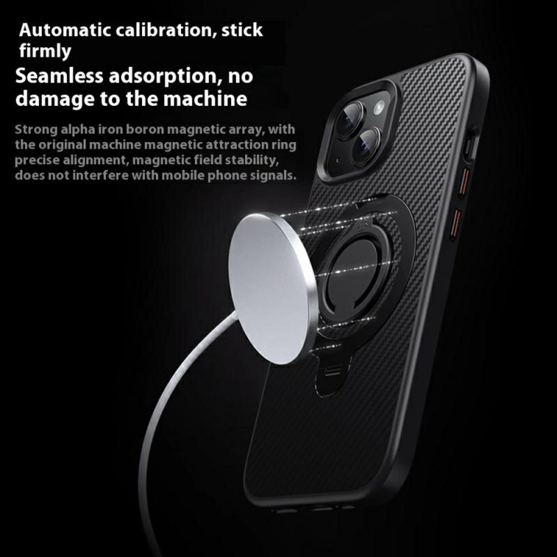 Scoprite la nostra cover ultra-protettiva per iPhone 13, che unisce stile e funzionalità. Con la sua elegante texture in carbonio, la compatibilità MagSafe e il supporto rotante a 360°, offre una protezione ottimale contro urti e graffi. Godetevi l'uso mani libere e il facile accesso a tutte le funzioni del tuo dispositivo.