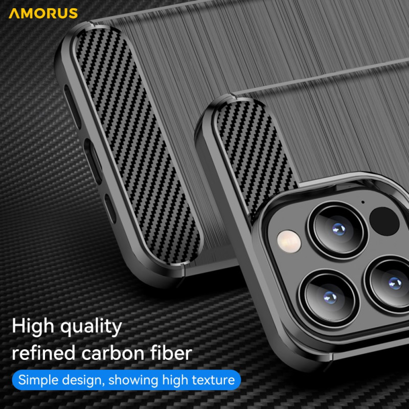 Proteggete il tuo iPhone 13 Pro con stile con questa cover AMORUS dal design con texture in fibra di carbonio. Realizzata in TPU di prima qualità, offre una protezione ottimale contro urti e graffi, mantenendo un accesso perfetto a tutte le funzioni del dispositivo.