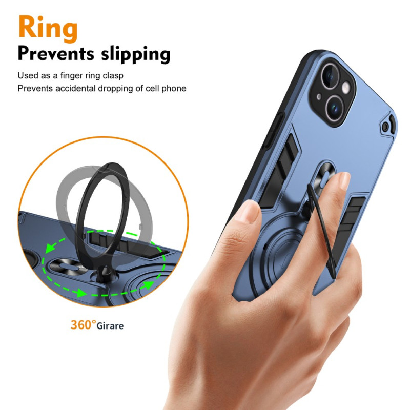 Scoprite la nostra innovativa cover protettiva per iPhone 14 Plus. Dotata di un supporto rotante a 360°, offre una protezione ottimale contro cadute e graffi. Il suo design ergonomico incorpora una piastra metallica per il montaggio magnetico in auto. Godetevi la visione mani libere e una maggiore protezione per il tuo prezioso dispositivo.