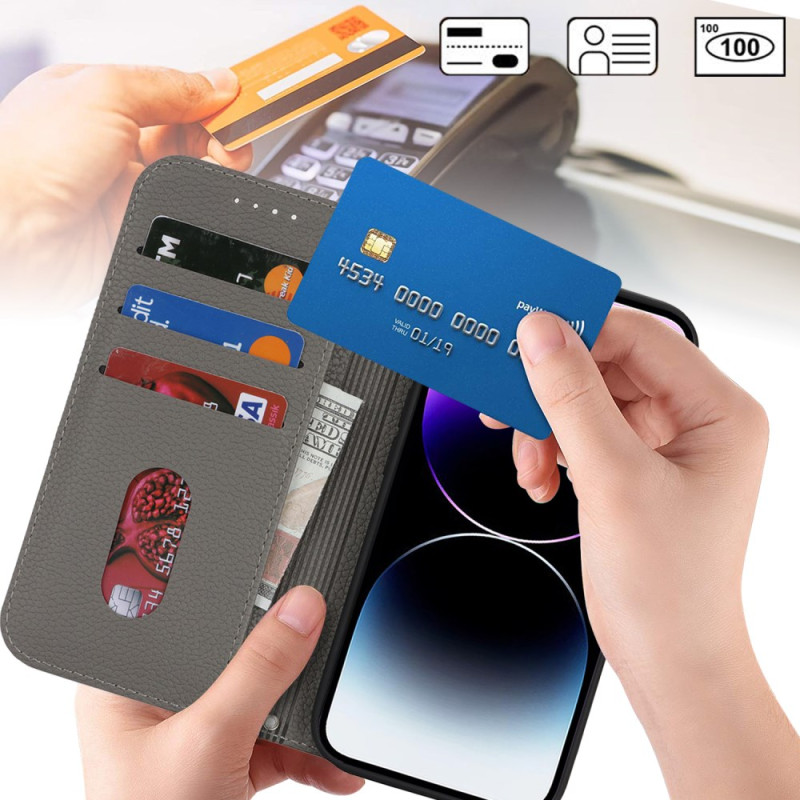 Scoprite la nostra elegante cover a portafoglio per iPhone 14 Pro Max. Realizzata in pelle testurizzata di alta qualità, offre una pratica cover per carte e denaro. Grazie alla chiusura magnetica e al cinturino da polso staccabile, questa cover combina funzionalità e protezione completa del dispositivo.
