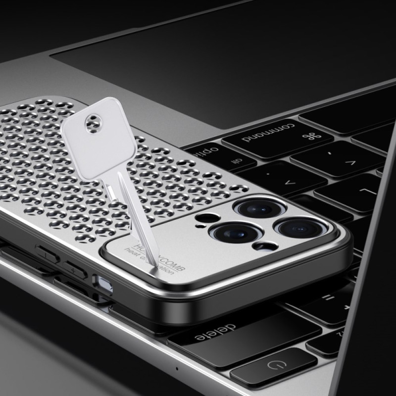 Proteggete il tuo iPhone 14 Pro Max con questa cover antigraffio con struttura a nido d'ape. Design elegante con eccellente dissipazione del calore, bordi rialzati per proteggere lo schermo e la fotocamera e accesso completo a tutte le funzioni.