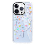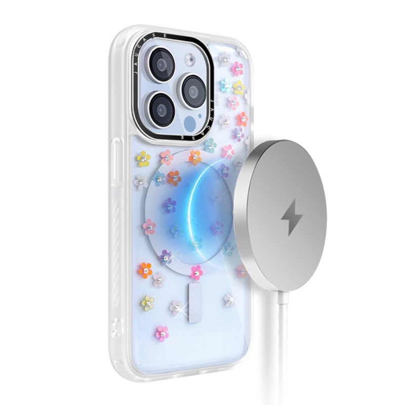Proteggete il tuo iPhone 14 Pro Max con stile grazie a questa cover ornata da fiori e strass scintillanti. Realizzata in PC e TPU, offre una protezione rinforzata contro le cadute fino a 3 metri, rimanendo compatibile con la ricarica MagSafe.